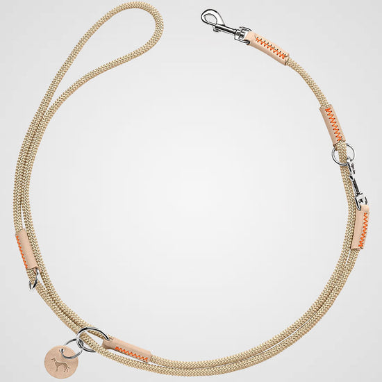 Diese Leine ist wunderbar leicht, flexibel – und trotzdem robust genug, um jede Hundebegegnung mit Stil zu meistern. Gefertigt aus einem sanften Tau mit einem stabilen Polyamidkern und edlem Rindsleder, fühlt sie sich butterweich an – dabei bleibt sie strapazierfähig und stets belastbar.